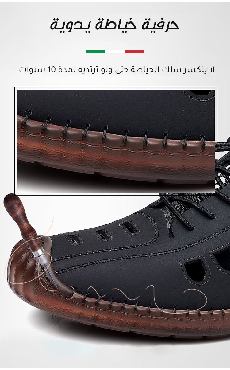 حذاء جلد جيد التهوية ذو النعل الناعم بحرفية صناعة يدوية إيطالية