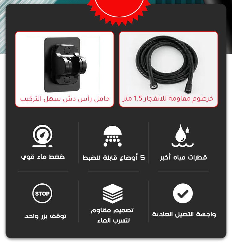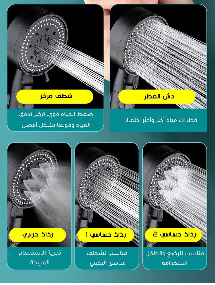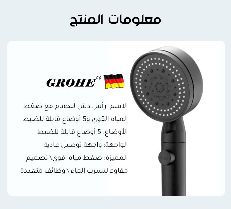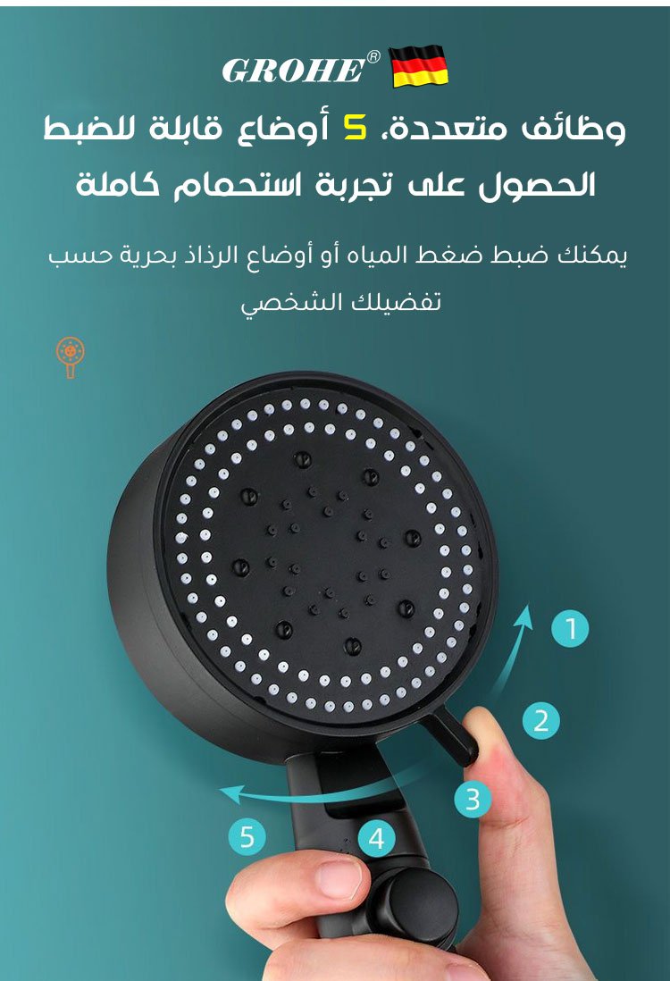 مجموعة رأس دش للحمام متعدد الوظائف مع 5 أوضاع قابلة للضبط من الماركة الألمانية مكونة من 3 قطع